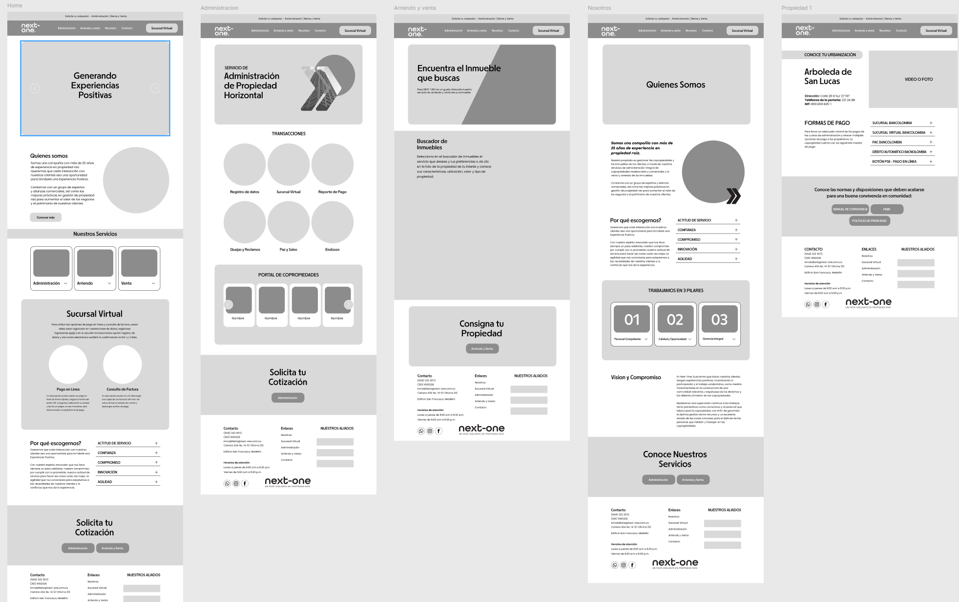 Next-One is a property management company located in Medellin, Colombia focused on taking an innovative approach to property management. The goal was to create a more intuitive, user-focused platform that simplified everyday interactions and improved the overall experience for residents. During the research phase of the website redesign, we discovered that roughly 10-20% of property management companies in Colombia had strong, intuitive user interfaces that actually supported everyday administrative tasks. Most platforms were outdated, difficult for residents to navigate. We also discovered that the majority of property management companies in Medellín didn’t have a digital platform at all.